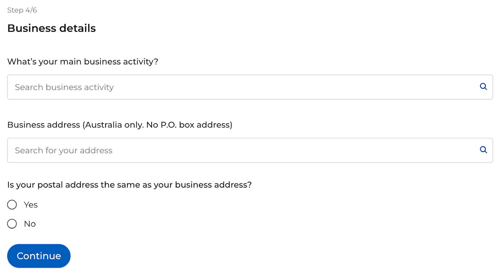 A business address must be a physical Australian address and cannot be a PO Box.